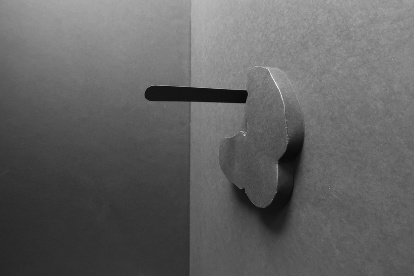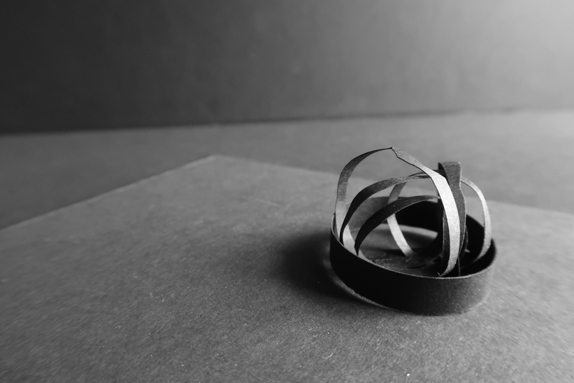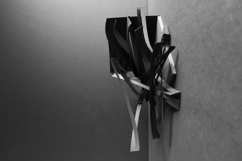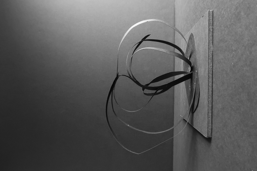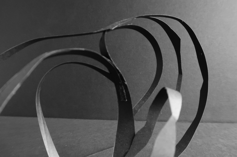 Appendix 16. Documentation of reflexive model-making. Four images of one paper model. Discussed in Chapter 4: Section 7: Aligning Double Consciousness and [How I Decide To Do A PhD].