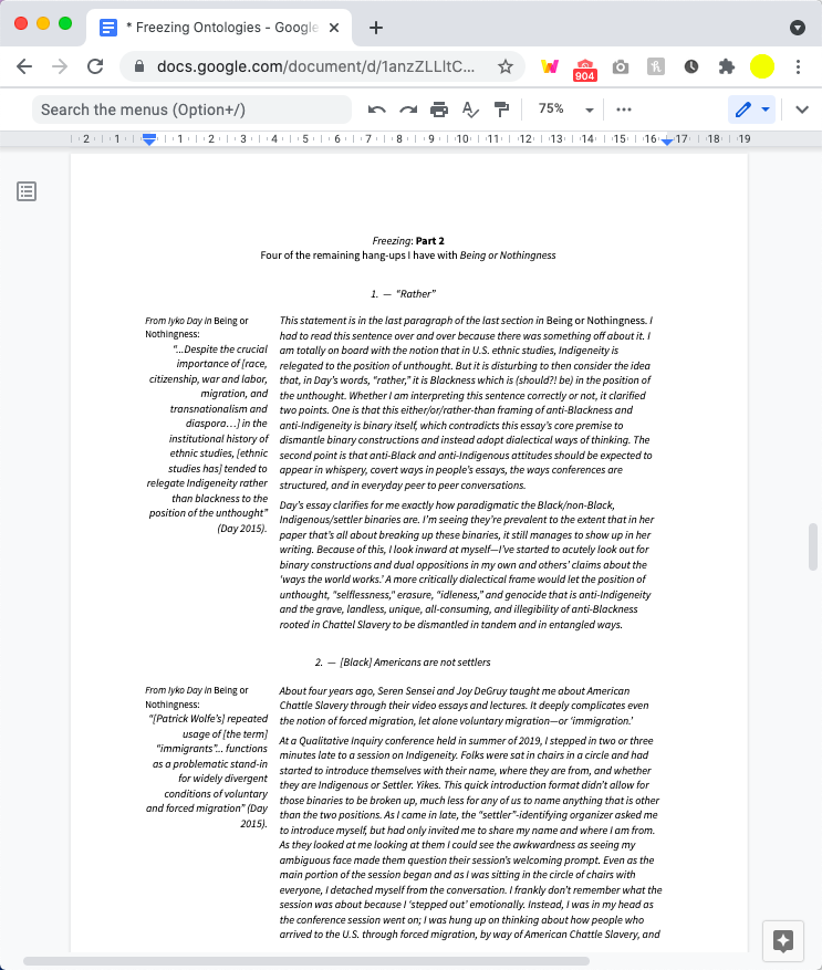 It was a weight at the bottom of my spine. It felt like it was anchoring me there in the horizontal block at the bottom of the page