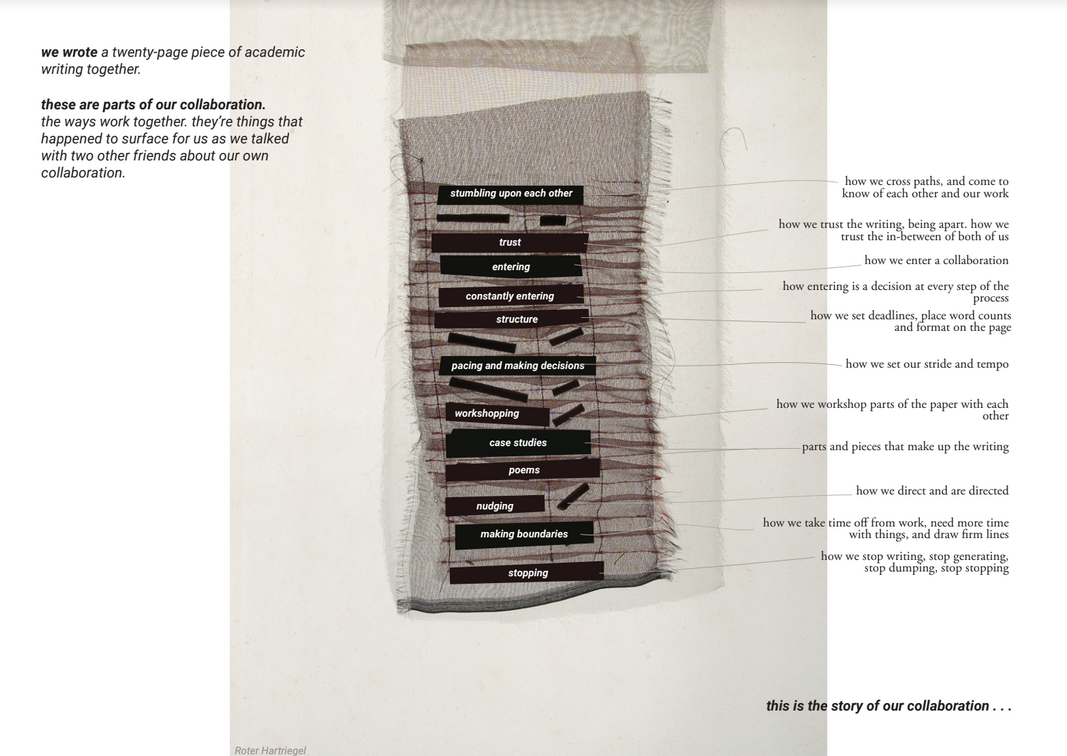 How flimsy was this, in contrast to the theory I know. How spare were my questions and modes of working. How thin was my relationship with each participant in the hour we had.